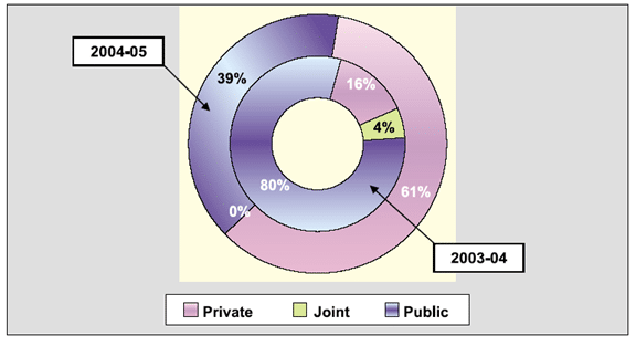 Figura 3. Ações Setoriais na Mobilização Total de Recursos 2004-2005. Securities & Exchange Board of India (SEBI), Relatório Anual 2004-2005: PARTE DOIS: REVISÃO DAS TENDÊNCIAS E OPERAÇÕES, p. 3. Localizado em http://www.sebi.gov.in/ relatório anual/0405/Part2.pdf.